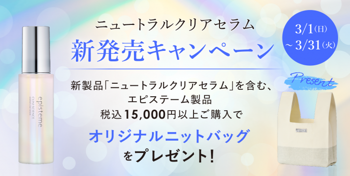 期間中に新美容液「ニュートラルクリアセラム」を含む、エピステーム製品税込15,000円以上ご購入で
