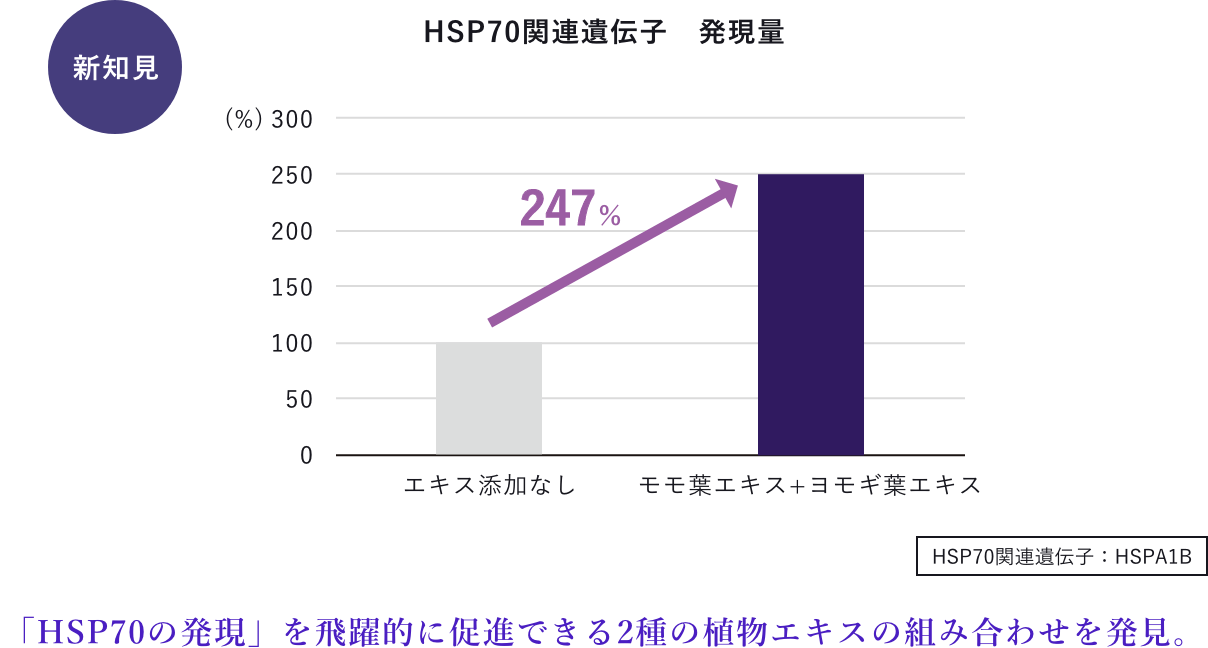 私たちはHSP70の発現を飛躍的に促進できる2種の植物エキスの組み合わせを新発見いたしました。