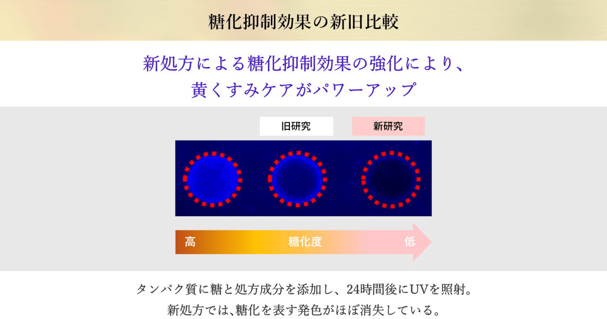 新知見では糖化を表す発色がほぼ消失しています。