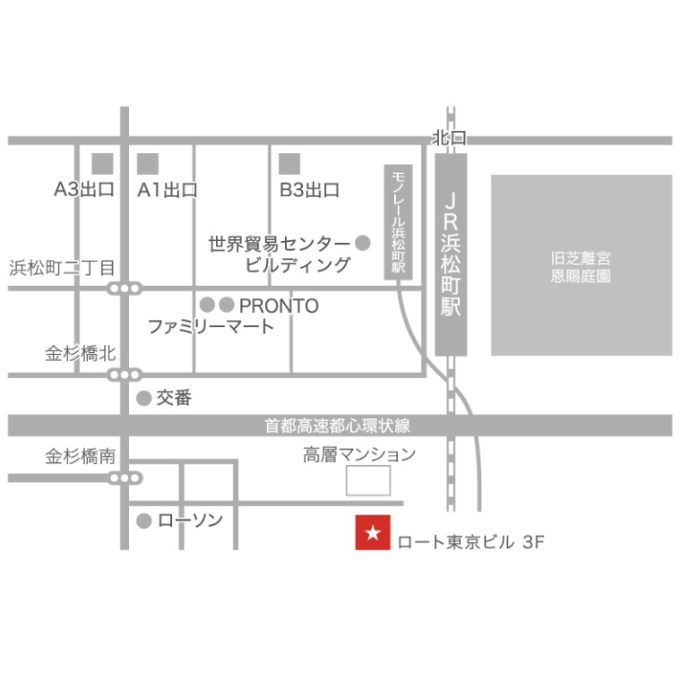 JR浜松町駅 南改札口より徒歩7分(金杉橋方面)